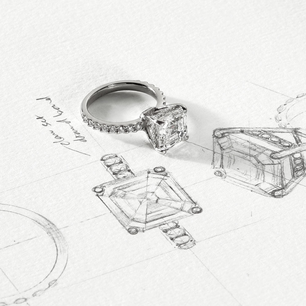 Hand-sketched custom ring design by Faith Jewels, showcasing your customized diamond ring
