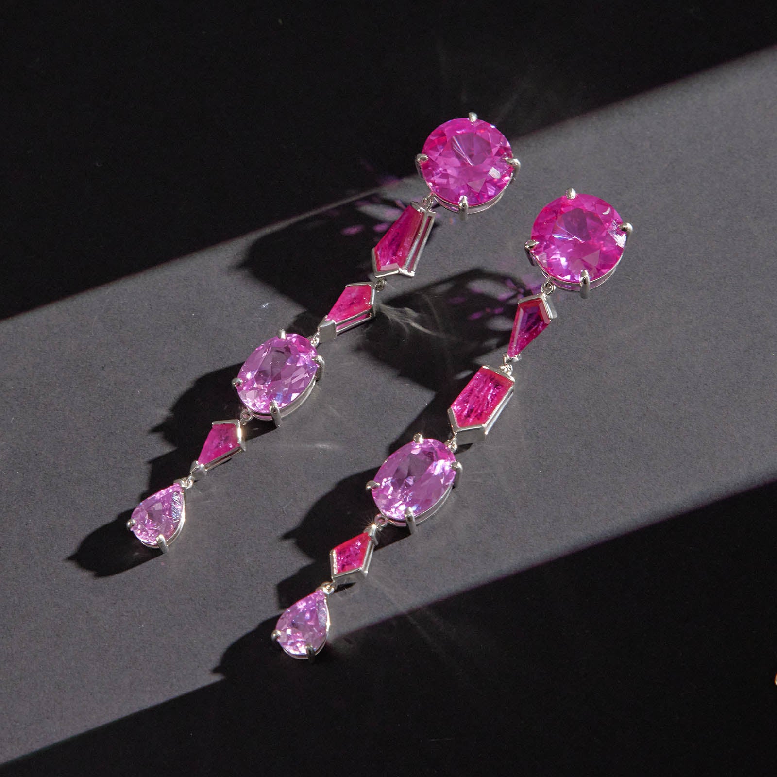 The FJ Bouquet collection now features multiple versions, each showcasing angular diamonds alongside precious and semi-precious colored gemstones. Every bouquet is uniquely crafted to reflect the wearer's personal taste and style.